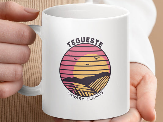 Vintage Sonnenuntergang Tegueste Kanarische Inseln Tasse, Retro Tasse, Kaffeetasse, Geschenk für Kaffeeliebhaber, Reisemotiv Tasse