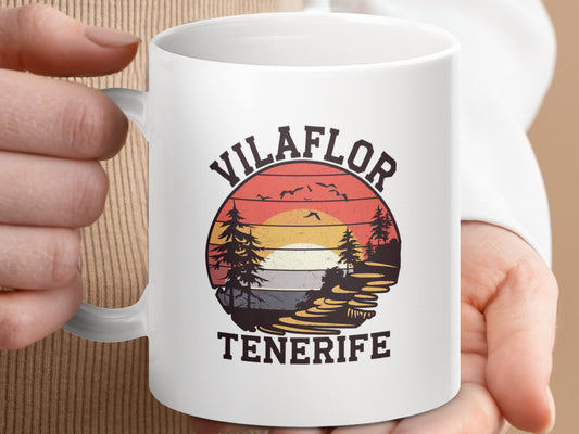 Vintage Sonnenuntergang Vilaflor Tenerife Kaffeetasse, Retro Design Tee Becher, Landschaft Wanderung Natur Liebhaber Geschenk