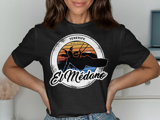 Teneriffa El Medano Sonnenuntergang T-Shirt, Kitesurfen Reisegeschenk, Urlaubssouvenir aus Spanien, Strand und Meer Design