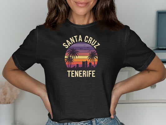 Santa Cruz Tenerife T-Shirt Palmen Sonnenuntergang Urlaub Geschenk Idee Damen Herren Sommer Retro Stil