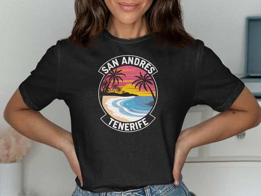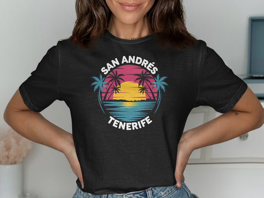 San Andres Teneriffa T-Shirt Sommerurlaub Grafik Sonnenuntergang Insel Strand Palmen Reiseinspiration Freizeitkleidung