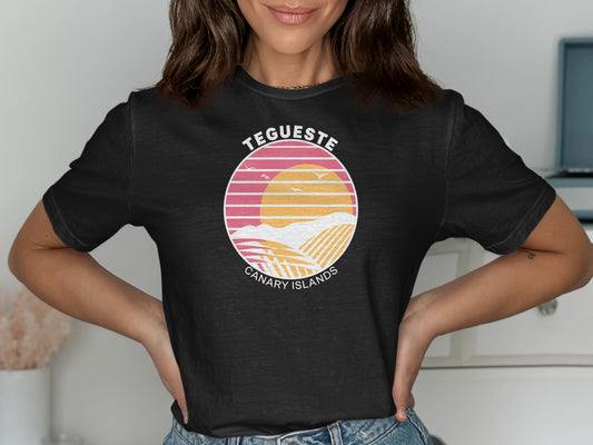 Tegueste T Shirt Retro Sonnenuntergang Design Kanarische Inseln Shirt Sommer Urlaub Herren Damen Geschenk