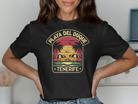 Strand Playa Del Duque TShirt, Retro Teneriffa Urlaub Shirt, Sommer Strand Design, Kanarische Inseln, Sonnenuntergang Palmen TShirt