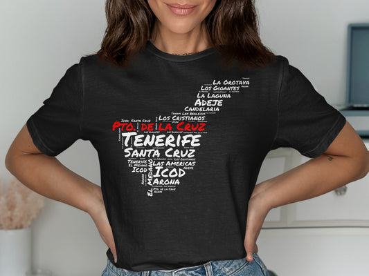Spanien Tenerife Wortkarte T-Shirt, Touristendesign, Urlaubssouvenir, Kanarische Inseln, Santa Cruz Fans, modisches Geschenk