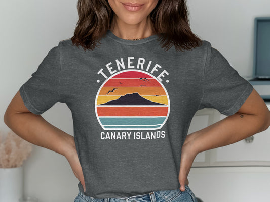 Vintage Teneriffa Grafik T-Shirt, Kanarische Inseln Design, Retro Sonnenuntergang Tee, Urlaub T-Shirt, Ideal als Geschenk