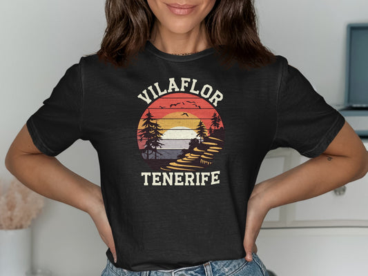 Vintage Vilaflor Teneriffa T-Shirt, Retro Sonnenuntergang Shirt, Natur Wander Shirt, Urlaub Souvenir Tee, Vulkan Kanaren Shirt