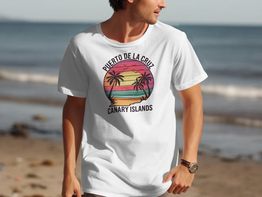 Vintage Puerto De La Cruz T-Shirt, Sunset Beach Graphic Tee, Retro Canary Islands Shirt, Palm Trees Design Top