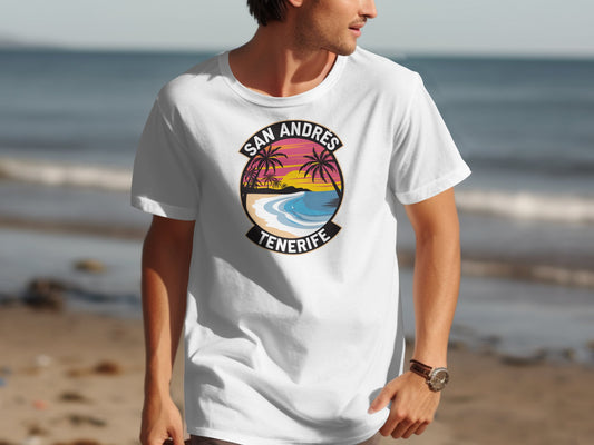 San Andres Teneriffa T-Shirt Sommerurlaub Grafik Sonnenuntergang Insel Strand Palmen Reiseinspiration Freizeitkleidung