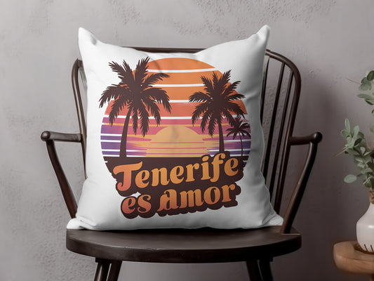 Retro Teneriffa Liebe Kissenbezug, Sonnenuntergang und Palmen Dekorative Kissenhulle, Teneriffa Liebhaber Geschenk, Tropischer Strand Kissen