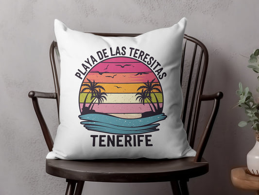 Playa de Las Teresitas Kissenbezug, Teneriffa Strand Dekor, Bunter Strand Scene, Sommer Wohnkultur, Insel Reise Souvenir