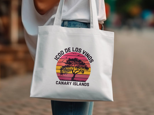 Icod de los Vinos Canary Islands Baum Sonnenuntergang Tote Bag, Umweltfreundliche Einkaufstasche, Geschenktasche für Reisen, Strand, Alltag