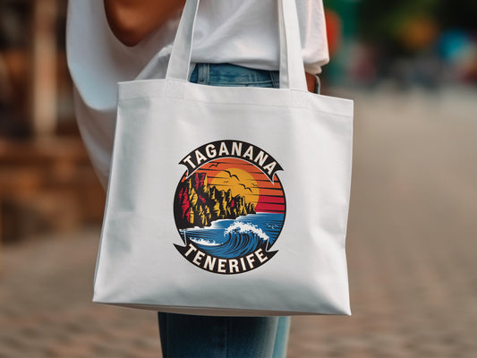 Strandtasche mit Taganana Teneriffa Design, Urlaubs Souvenir Tote Bag, Wiederverwendbare Einkaufstasche, Sommer Handtasche