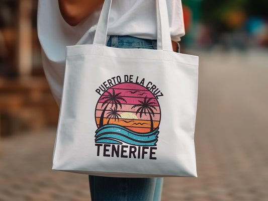 Retro Teneriffa Sonnenschein Grafik Strand Accessoire, Perfekt als Geschenk, Stilvolle Einkaufstasche mit Tropisches Design