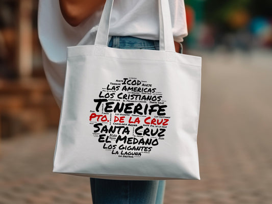 Teneriffa Souvenir Tote Bag, stylische Tasche mit Orten wie Los Cristianos, Santa Cruz, Puerto de la Cruz, perfekte Geschenkidee
