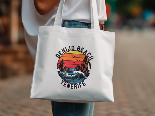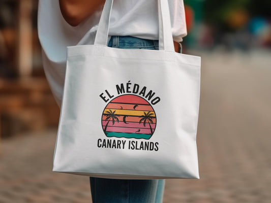 Vintage Strandmotiv Tote Bag, El Medano Tote, Tote Bag kanarische Inseln, Tote Bag Geschenkidee, Einkaufen Accessoire