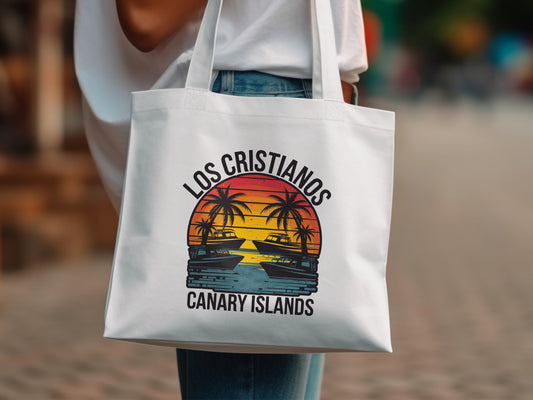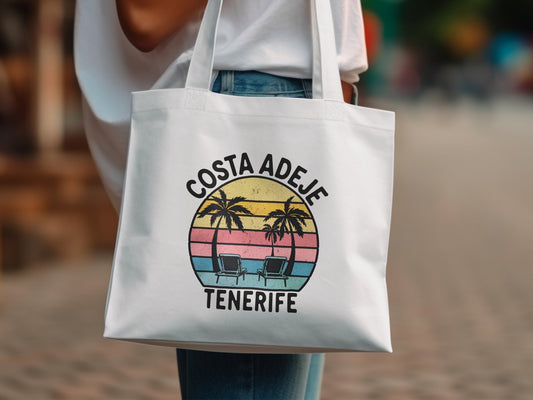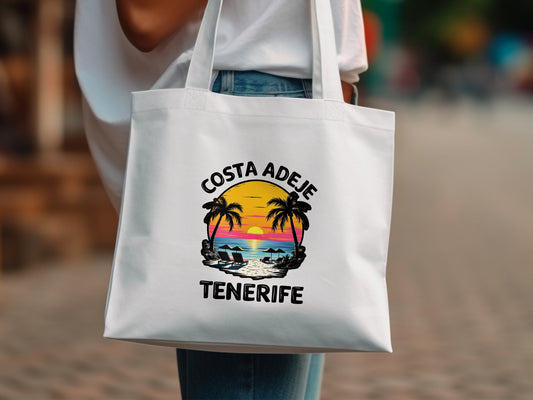 Bunte Costa Adeje Tenerife Tote Bag Strandurlaub Reise Souvenir Einkaufstasche Tropischer Sonnenuntergang Palmen Sommer Geschenk
