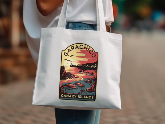 Retro Garachico Kanarische Inseln Tote Bag, Umweltfreundliche Einkaufstasche, Stilvolle Schultertasche, Alltags Tragetasche