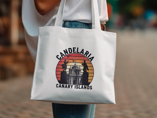 Candelaria Canary Islands Tote Bag Vintage Style Travel Souvenir Bag Reusable Shopping Bag Summer Vacation Bag Beach Tote